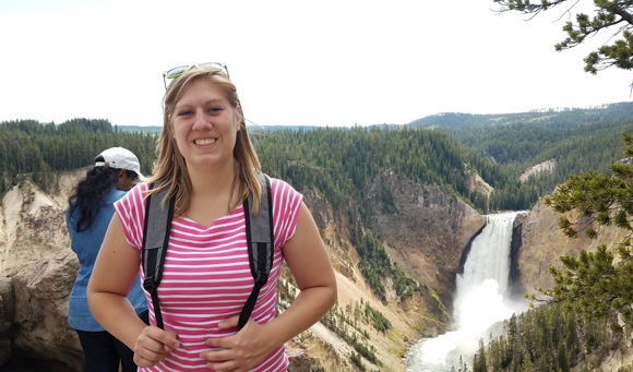 Top: UW-Stout hospitality student Nicole TenHaken does some sightseeing in western Montana, near where she is interning at the Stock Farm Club.
