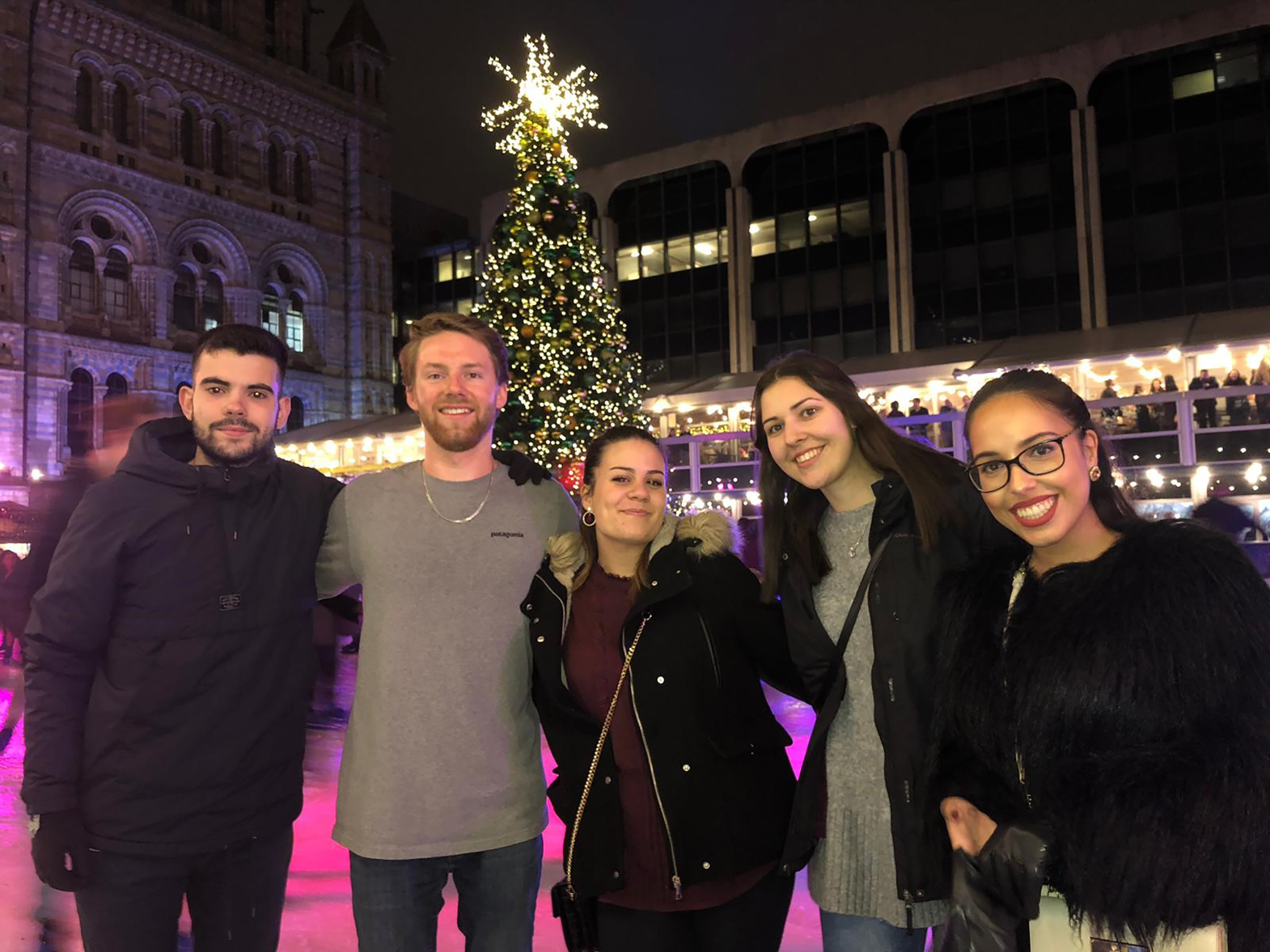 Maxwell Corner, second from left, enjoys a holiday celebration in Europe with other international students.