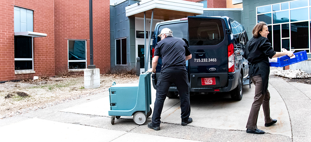 University of Wisconsin-Stout University Dining staff are making sure students remaining in residence halls are getting the nutritional meals they need through an on-campus delivery program that started March 25.