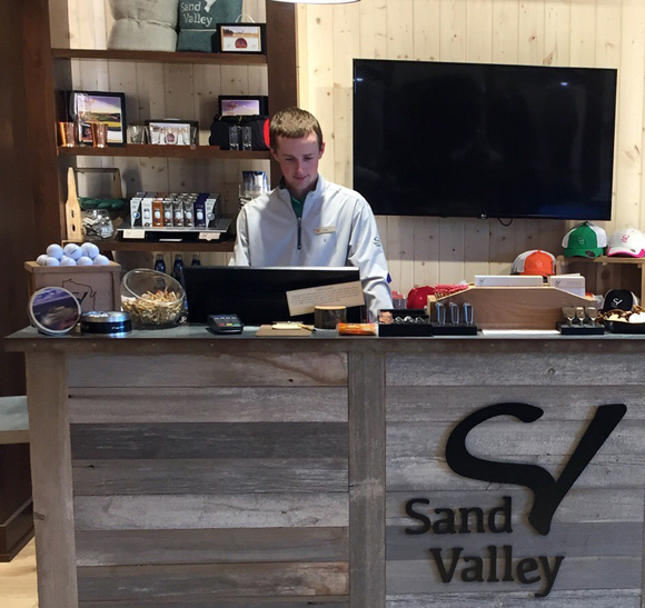 UW-Stout student Drew Ringelstetter, who received a scholarship from the Golf Course Owners of Wisconsin, works at the front desk at Sand Valley Golf Resort in Wisconsin.