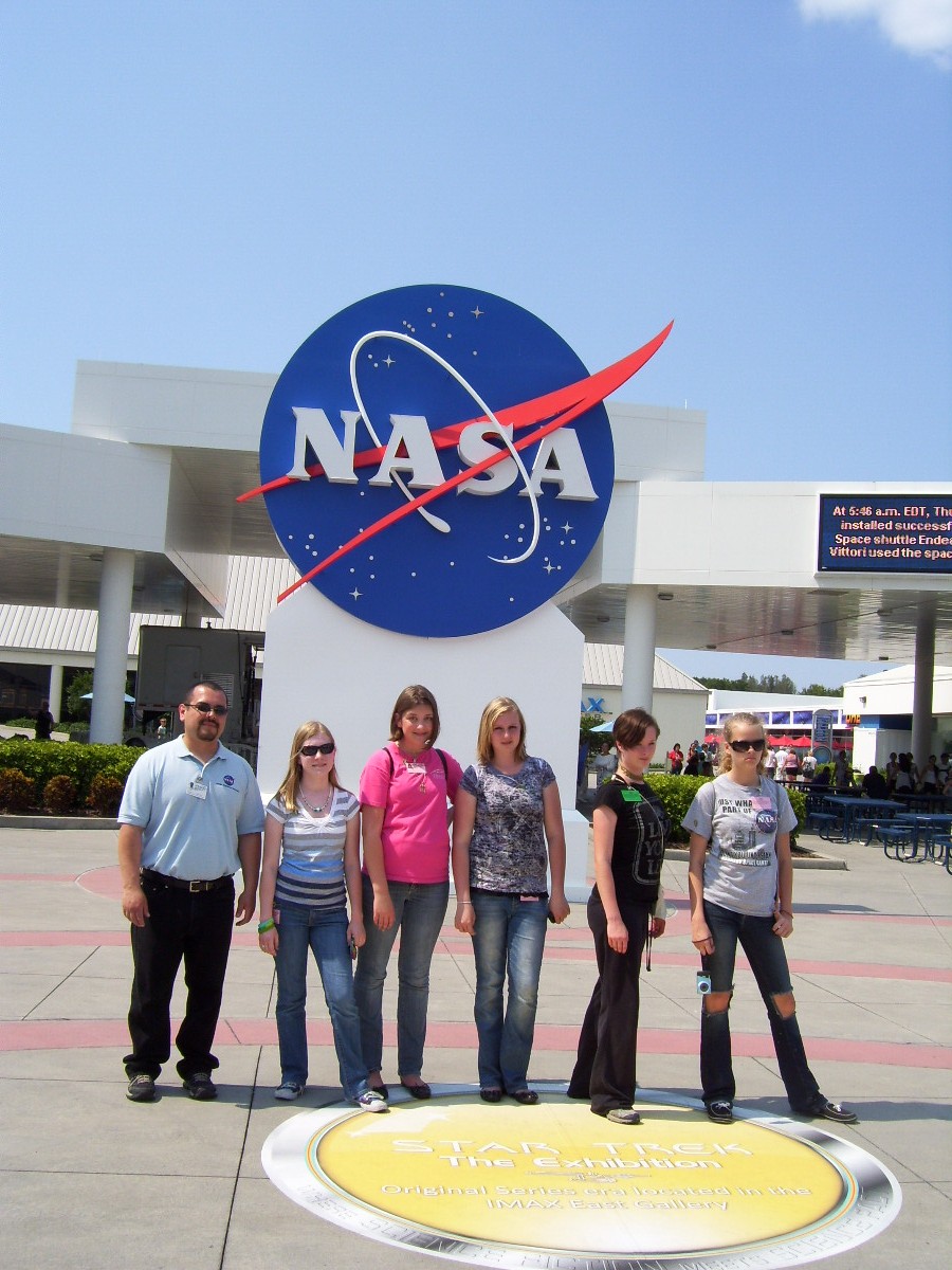 Chris DeLeon with Hudson High students at NASA.